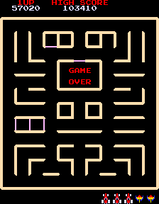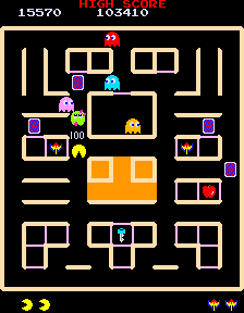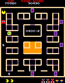 As for points to criticise, one similarity this one shares with Super Pac-Man that I wish it didn't is the lack of wrap-around tunnels- you kind-of miss them if you play the original Pac-Man or Ms. Pac-Man before this one, it makes the maze feel a little cramped and claustrophobic. The t-shaped intersection does fill its role as an escape route but being able to get from one side to the other a little quicker would've been nice. Also, I must admit I'm not a huge fan of the bonus board where you have to uncover playing cards to find dollar signs and not the Blinky which ends your run. It's a little weaker than something like Galaga's Challenging Stage or even the bonus boards from Super Pac-Man. At first they seem completely random- sometimes you'll uncover Blinky at the first card, others you'll avoid him entirely- but as explained in this Arcade Archives stream (thanks for the heads-up, Lee!) there's actually a system behind it. Counting down from top to bottom and left to right, each card corresponds to a possible value on in the 10s part of your score (1-9 then 0), and Blinky is always hiding behind the one that matches your score when you enter the bonus board. It's just a little dry is all, the only real flavour being that Miru's location (for a points multiplier) isn't as simple to predict. The skill-based bonus boards of Super Pac-Man are definitely my preferred style between the two, so maybe they should've just brought those back instead!