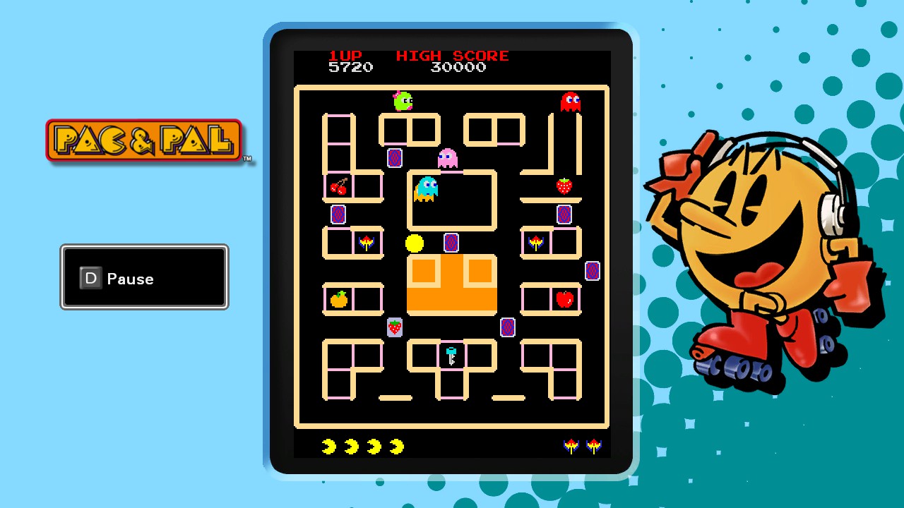 Watch out, arcades of the world, Gaming Hell is looking to root through your dumpsters in search for default dip-switch settings! Our review for this one was conducted on a few different versions- mostly Pac-Man Museum + on the Switch and MAME- but there was a disparity between MAME and other official versions, that being the score extend settings. Museum + and the Arcade Archives version default to lives being given out at 30K and 80K only, while MAME defaults and the Arcade Restoration Workshop listing for the dip-switches point to lives being given at 20K, 70K and every 70K thereafter. Which is the one true default? We, uh, don't know. No Pac & Pal manual has made itself evident on the internet to illuminate the situation, so while we started playing the game in MAME to get screenshots with the MAME defaults, we switched to the other setting afterwards. Maybe some of those older screenshots made it to the final product, who knows, this is being written while the article is in the 'oh God I haven't written enough I've got to hash something together before Ed reads this' phase of production on my writer cohort's end. But it felt pertinent to point it out. For some reason.