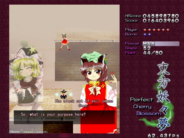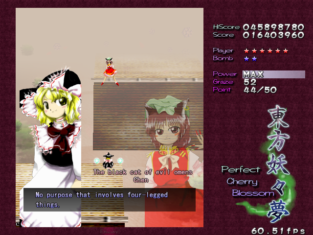 Chen... Isn't very interesting. She's only a Stage 2 boss, after all. So, let's skip the character history.