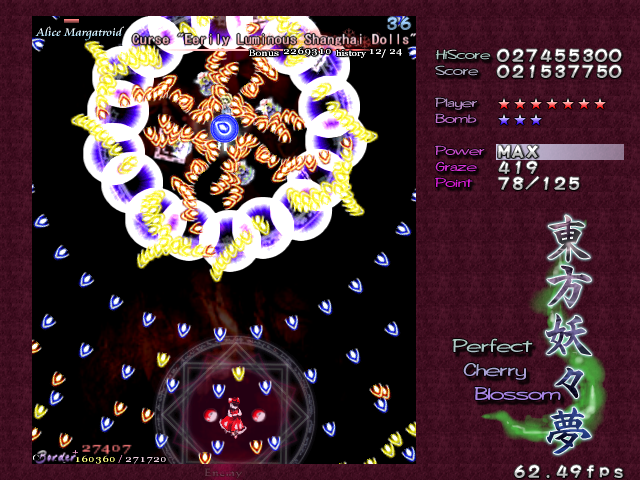 And here's the obligatory Lunatic screenshots, demonstrating an extra Spell Card Alice uses during this mid-stage encounter.