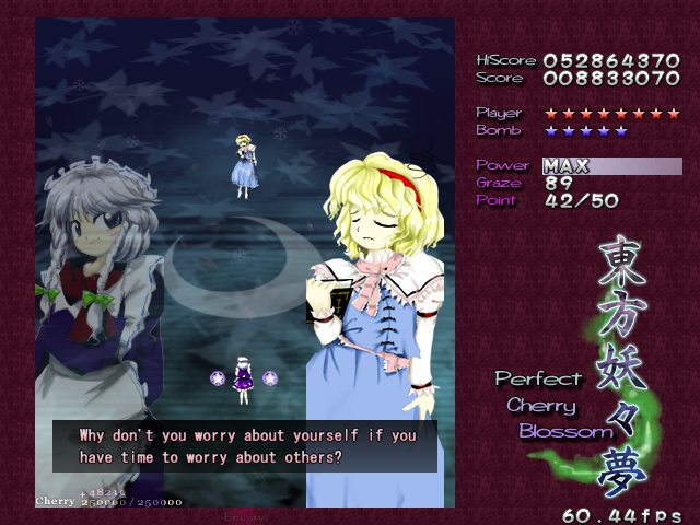 This Spell Card seems tough now, but do you know what? It's nothing compared to the attacks to come later.