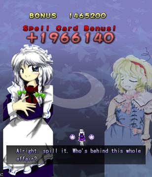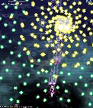 Before the next Spell Card, you get this brief attack. Alice only launches one wave, and they turn into Star Items very quickly. Hardly a threat.