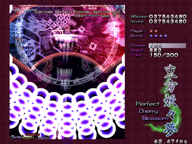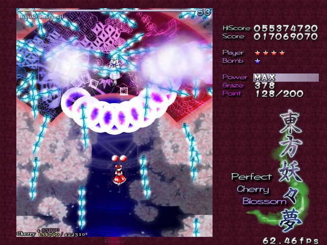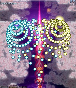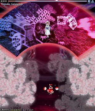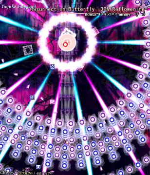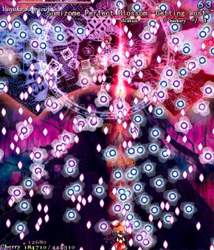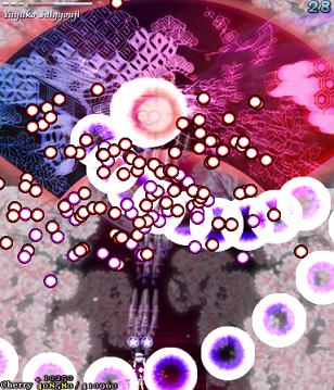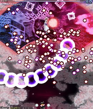For the final Spell Card, Yuyuko opens up with a lovely bunch of gigantic stacked bullets...