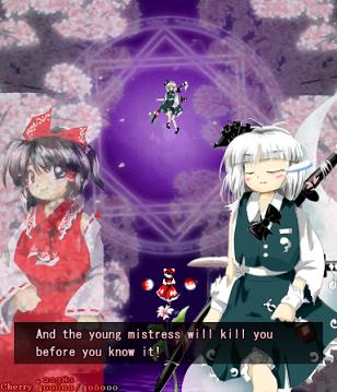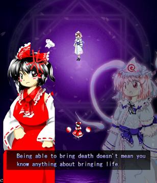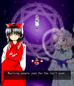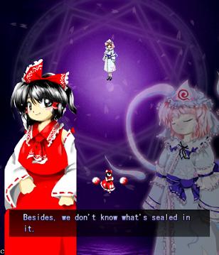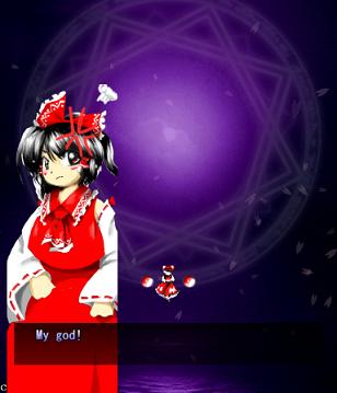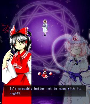 Here, Reimu tries to be cool and bad-ass, but sadly fails.