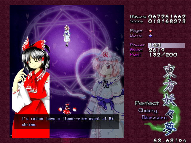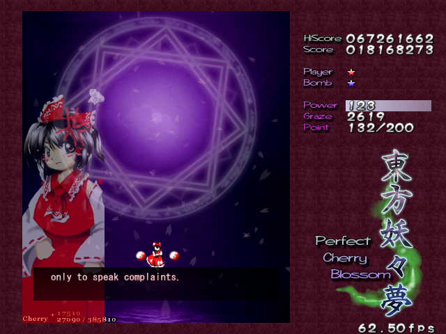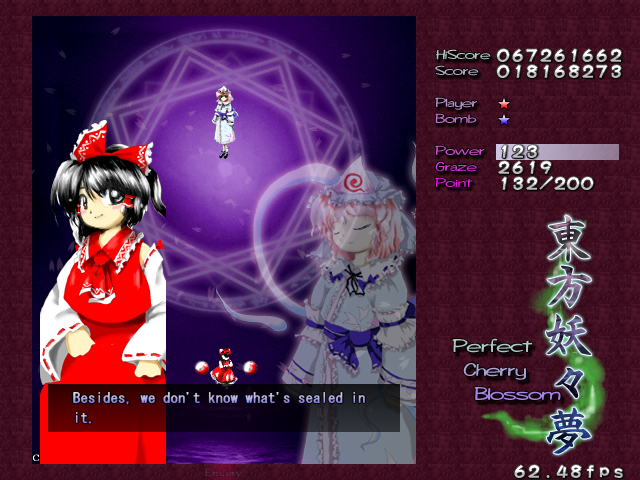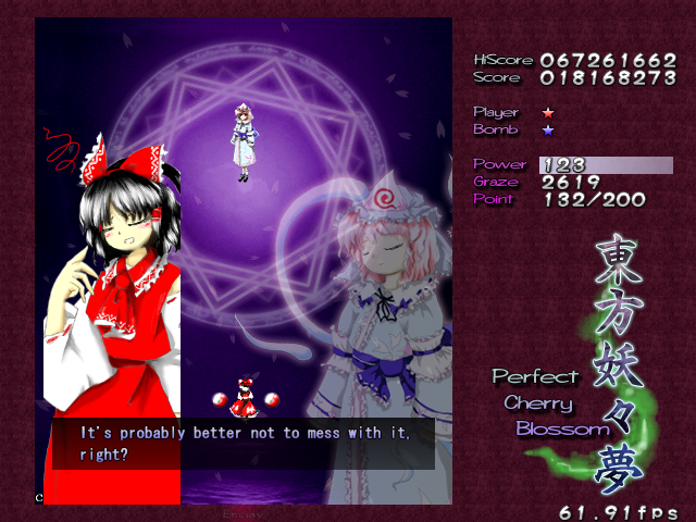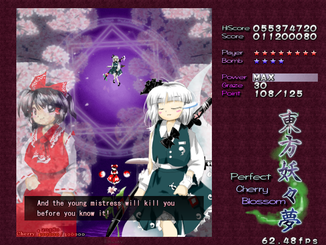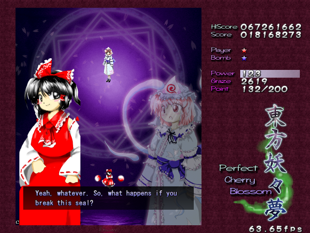 After you beat Youmu again, she'll pass you a Bomb, and then it's the main event. Time for Reimu to have the last word on this matter.