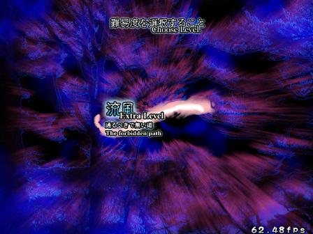 Just because you've completed the main game doesn't mean you're finished yet, oh no. There's two more stages hidden in the game. The first is unlocked 'simply' (ha ha ha!) by beating the game on any difficulty without continuing. When you do this, you can finally select Extra Start from the main menu. However, you unlock the Extra Stage on an individual character/shot basis- if you beat the game with Reimu B, you can only play the Extra Stage as Reimu B. Needless to say, unlocking the Extra Stage for every character is mighty tricky.