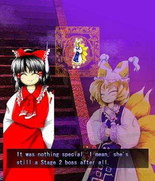 ... It doesn't stop here, though! The final stage, Phantasm, is only available to those who have either sold their souls to the Devil in exchange for paranormal powers, or are hopelessly addicted to Touhou games. Serving as an epilogue to the epilogue (if that even makes sense) where you have another pop at Ran and her master, Yukari Yakumo (a Youkai who serves as a walking, talking 'a wizard did it' getout clause for weird shit in Gensokyo) you need to beat the Extra Stage, and have a total of 60 captured Spell Cards (all characters combined) to unlock it. Again, it's on an individual basis, so if you meet the requirements with any character/shot type, you'll unlock the Phantasm stage for that combination only. Although the music is remixed from the first Extra Stage it sounds different enough to get a few music links. However, I refuse to watch YouTube replays of this stage, because if I do, I fear it will make me cry.