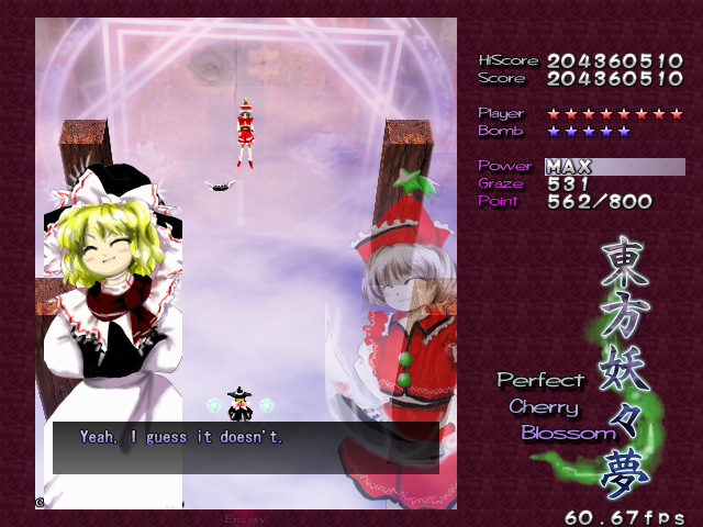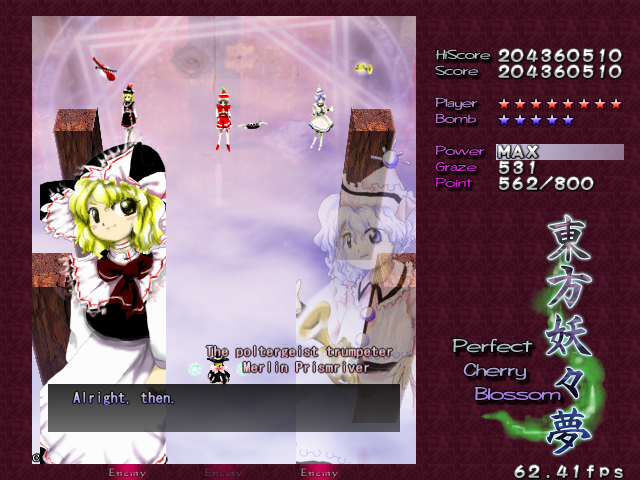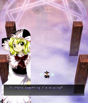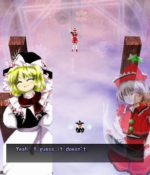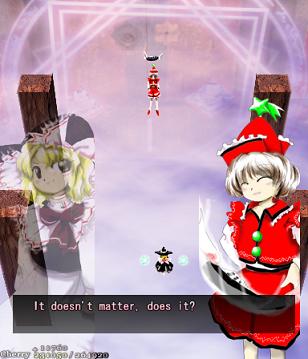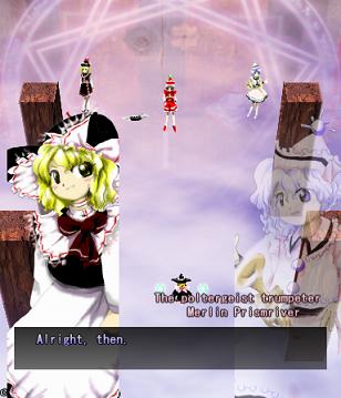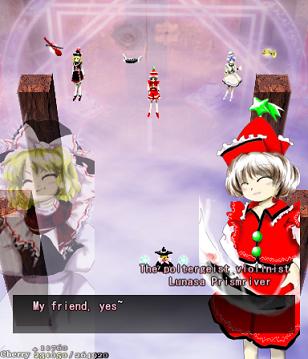 You've got no choice here- move on ahead to fight the Prismriver Sisters and their weird floating instruments!