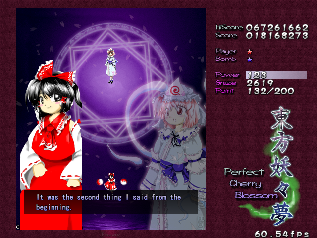 So, here's the full conversation with Yuyuko on Stage 6.