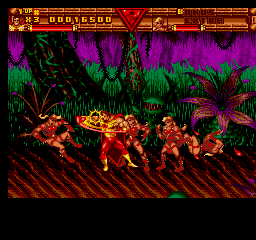 Much like D. D. Crew, then, crowd control is a luxury rather than a given, but at least in D. D. Crew you always have it as a possibility, as awkward as it can be to set up. In Prime though, you don't even have that. Because of the rushed nature of the game, not every enemy can be thrown in every direction! The standard henchmen, for instance, can be thrown every which way but the ticking-time-bomb enemies can't be thrown backwards, and enemies holding bats can't be grabbed at all. This isn't some kind of interesting quirk like big guys being unable to be thrown certain ways in Streets of Rage 1 & 3, it just affects enemies they didn't have grabbable frames for- the heaviest-looking enemies in the game, the apes in the amazon section, can be grabbed and thrown about any way you like. So, what was finished and working made it into the game, and what wasn't... Was not included. Had this been finished properly, Prime would've been at least passable, and far, far less frustrating to play in theory because you'd have way more options available to you. Of course, that's not the only problem Prime has working against it.