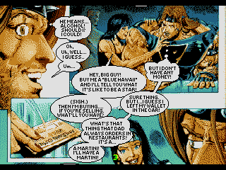 Still, if nothing else Prime is a good example of a successful merging of a video game and multimedia software in a sense, due to its extra features which were proudly touted on both the adverts for the game and the back of the box. Fifteen full comic book issues- Prime #1-#12, Break Thru #1-#2 and Mantra #7- are available to read although, well, the limitations of the Mega-CD make this... Quite the experience. As it can only display 64 colours on-screen at once, these comics had to be massively crushed in terms of colour depth, resulting in very bizarre-looking pages, and they had to be relettered by hand to remain readable. There's also a video interview with Gerard Jones (arrested in 2018 for child pornography possession) and Len Strazewksi (partly responsible for the Malibu Street Fighter II comics), writers on Prime, and Norm Breyfogle (best known for working on on Batman from 1987 to 1995, he passed away in 2018), artist for the first twelve issues of Prime. These sorts of things are of course commonplace now- how many games can you think of that have unlockable interviews and concept art?- but it's still pretty interesting to see this approach on a games console rather than a home computer from this time period. Malibu would take a more traditional comics-on-disc thing later with CD-ROMIX!, a DOS-based version of Prime #1 with music, voice-acting (oh, yes) and a more dramatic presentation. At least Prime tried on Mega-CD, though.