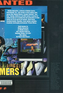 We now approach the video game side of things! We got there eventually, right? Now, rather than just farm the property out to a known (or cheap) developer as was usually the case at the time, Malibu had their own video game workhorses to go for. Fortunately, GDRI have been on the case as usual, so we'll be using their information as a basis along with some other sources. So, Malibu Interactive themselves weren't always known by that name- they were originally Acme Interactive, founded in 1991 by Cinemaware's Bob Jacob after the collapse of the company due to, among other things, the failure of It Came from the Desert on the TurboGrafx-CD. Focusing mostly on the Mega Drive, the only games you'll find under that name are a few sports games for Sega like David Robinson's Supreme Court and Evander Holyfield's Real Deal Boxing (itself a port of 1991's ABC Wide World of Sports Boxing / TV Sports Boxing) before they were bought by what was then called Malibu Graphics Publishing Group, then becoming Malibu Comics as a whole with Acme being renamed Malibu Interactive. It's perfect, right? Why go to the trouble of finding a developer to do games based on your properties, when you can get it done yourself? Even better, alongside the founder of Cinemaware were ex-pats from veteran studio Software Creations including legendary video game music composers Tim and Geoff Follin! Under this name you're more likely to know them from the Mega Drive and Mega-CD versions of Batman Returns, but they also did the Ex-Mutants game on the Mega Drive, Dinosaurs for Hire on the Mega Drive, Cliffhanger for pretty much everything that was on, and of course, Prime on the Mega-CD.