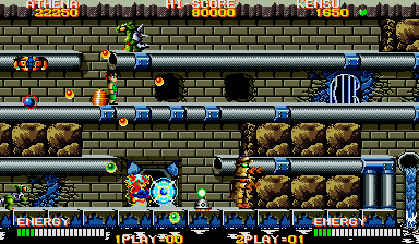 ![]() Making her idol debut well before THE iDOLM@STER and even Idol Hakkenden, Athena Asamiya is one of the very first video game idol characters. Unless Yohko Ishino counts, and let's face it, she doesn't. As the purple-haired, psychic-powered, J-Pop singing descendant of the old Goddess of Wisdom Athena, she's not that fleshed-out here, but her later appearances in The King of Fighters series would add a bit more to her character (as well as changing her voice and costume every year). For now, she's just one of two final hopes for the Earth against the evil Shiguma hordes. Putting the fate of the planet in the hands of an idol... What savage times the '80s were.