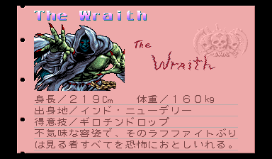 | ![]() "I am the harbinger of your destruction!" WRAITH Affiliation: BWA Height / Weight: 7' 2" / 351 lbs. From: New Delhi, India who uses snakes and flames to terrorise his unlucky opponent. |