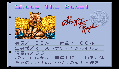![]() "Let's hope I don't break the mat with your body!" "THE GRATER" (JP: Sheep the Royal) Affiliation: CWA Height / Weight: 6' 6" / 359 lbs. From: Melbourne, Australia wrestling after American football kicked him out the sport.