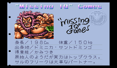 | ![]() "You look like a weakling 'mon! This will take me's a second! "MON" (JP: "Missing IQ" Gomes) Affiliation: CWA Height / Weight: 6' 6" / 331 lbs. From: Santo Domingo, Dominican Republic was trained to wrestle and is managed by a pet monkey, Freak.