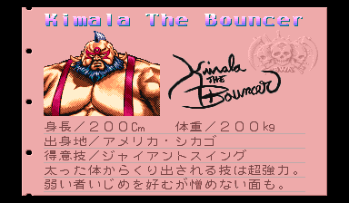 ![]() "I will finish ya like a two pound burger!" "FLAP" JACK (JP: Kimala the Bouncer) Affiliation: BWA Height / Weight: 6' 7" / 441 lbs. From: Yellow Knife, Canada fired for picking fights with customers, he is loyal to The Scorpion.
