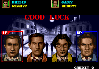 Dead Connection is a game that takes elements of games before it- most notably Robotron: 2084/Smash T.V. and crosshair shooters such as Cabal- melds them together, then adds its own ideas to make something just as great, topped off with Taito's trademark charm. As one of four maverick cops in 1953, you must bring peace back to the big city by killing everyone in the evil crime syndicate! And when I say everyone, I mean it. No-one in Nerozzia's gigantic crime gang is safe from the bloody hand of justice.