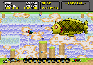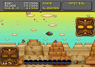 Well, OK, there's two things that it doesn't quite get right- the difficulty and the graphics. If it got these down pat, then I'd be more willing to give it a perfect 5. The original game is well known for being absolutely brutal, but after a few tries, Super Fantasy Zone is a little too easy- some of the new weapons are extremely useful, to the point where they suck some of the challenge out of the game- and, because the Mega Drive isn't quite as capable as the System-16 hardware that Fantasy Zone runs on, it's not quite as offensively vibrant. It's extremely colourful for a Mega Drive game, of course, but still... I know, this is overwhelmingly negative, isn't it? It's just that I love the Fantasy Zone games, and while this is second best, it doesn't quite achieve the real purpose of a sequel- to be the original, but better. This is the original, but almost to the letter. Not necessarily a bad thing, but had it somehow improved the game and felt less like a repeat, then this would be 5-stars. As it is, it's recommended, but not without reservations.