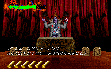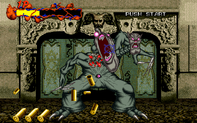 Now, Zombie Raid would've been an essential light-gun game, but it's got two problems that hurt it quite a bit. The first is that some sections drag on for a bit too long- this isn't so bad at the beginning of the game, but near the end, you can tell the developers were just stretching it out for the sake of it, and it gets a little bit dull. However, there's usually a pay-off of some sort, whether it's a shocker moment or a boss fight. The other thing is that there's some moments where, no matter what you do, you're unable to stop taking damage- again, not so bad early on but really noticable in the later boss fights, and it smacks of the designers doing it just to siphon money out of you. Yeah, a lot of light-gun shooters have moments like this, but is there really a need for it? It hurts an otherwise very good game, but if you're willing to put up with this (and I'm sure you are, because you're almost certainly going to have to emulate this) then this is definitely one of the better sprite-based light-gun games, one that never got the attention it perhaps deserved upon release.
