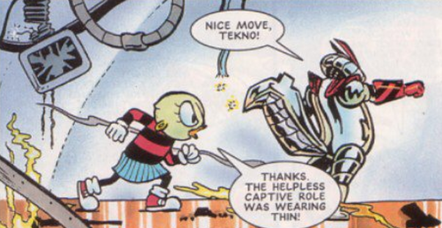 ![]() ![]() ![]() ![]() Behind the scenes, as explained on a post on the Sonic the Comic Mailing List by Roberto Corona, Pirate S.T.C. was a last-minute replacement for a ToeJam & Earl-based strip which an artist was 'a fair way into [making] before it became apparent that the licensing wasn't in place, nor was it going to be". As a result, Pirate S.T.C. was 'knocked out pretty quickly' (their words, not mine) and you know what, I can believe it. I almost feel a little bad for them. |
