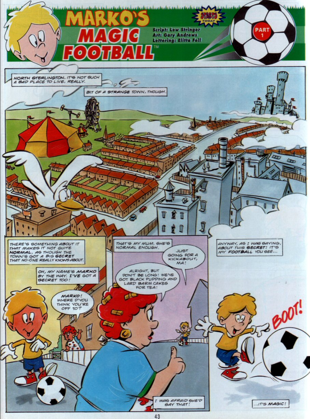 ![]() MARKO'S MAGIC FOOTBALL Issues #41 - #46 Dec 23, 1994 - March 3, 1995 ![]() Script: Lew Stringer Art: Gary Andrews Lettering: Elitta Fell |