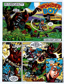 ![]() WONDER BOY IN DEMON WORLD Arc 1, Issues #2 - #9 June 12, 1993 - Sept 19, 1993 WONDER BOY IN GHOST WORLD Arc 2, Issues #22 - #27 April 1, 1994 - June 10, 1994 ![]() Script: Mark Eyles Art: Bojan Djukic Lettering: Steve Potter |