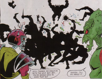 ![]() KID CHAMELEON Arc 1, Issues #7 - #12 Aug 21, 1993 - Oct 30, 1993 BACK TO UNREALITY Arc 2, Issues #54 - #59 June 9, 1995 - Sept 1, 1995 ![]() Script: Michael Cook Art: Brian Williamson & Steve White Lettering: Tom Frame |