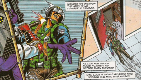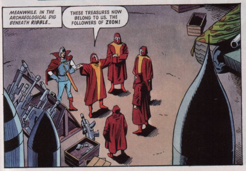 ![]() THE CURSE OF ZEON Issues #73 - #78 March 15, 1996 - May 24, 1996 ![]() Script: Nigel Kitching Art: Martin Griffiths Colouring: Gina Hart Lettering: Tom Frame (P1 - P4), Steve Potter (P5 - P6) |