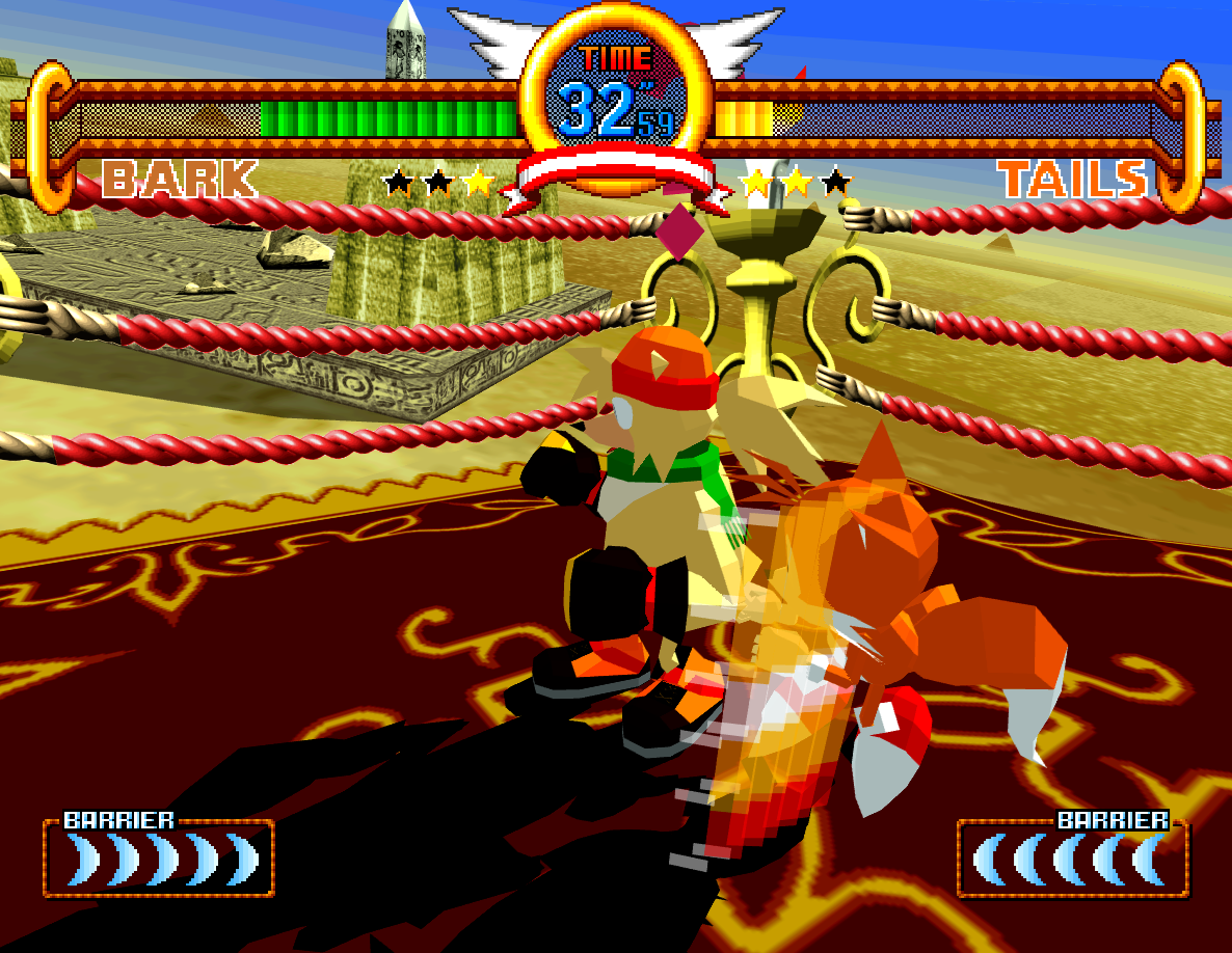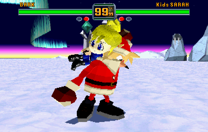 | ![]() THE POLERBEAR From: Sonic the Fighters (1996) Full Name: Bark the Polarbear Speciality: Throw Home Stage: Aurora Icefield beanie and scarf, he's ready to take everyone else for a ride with his throws. |