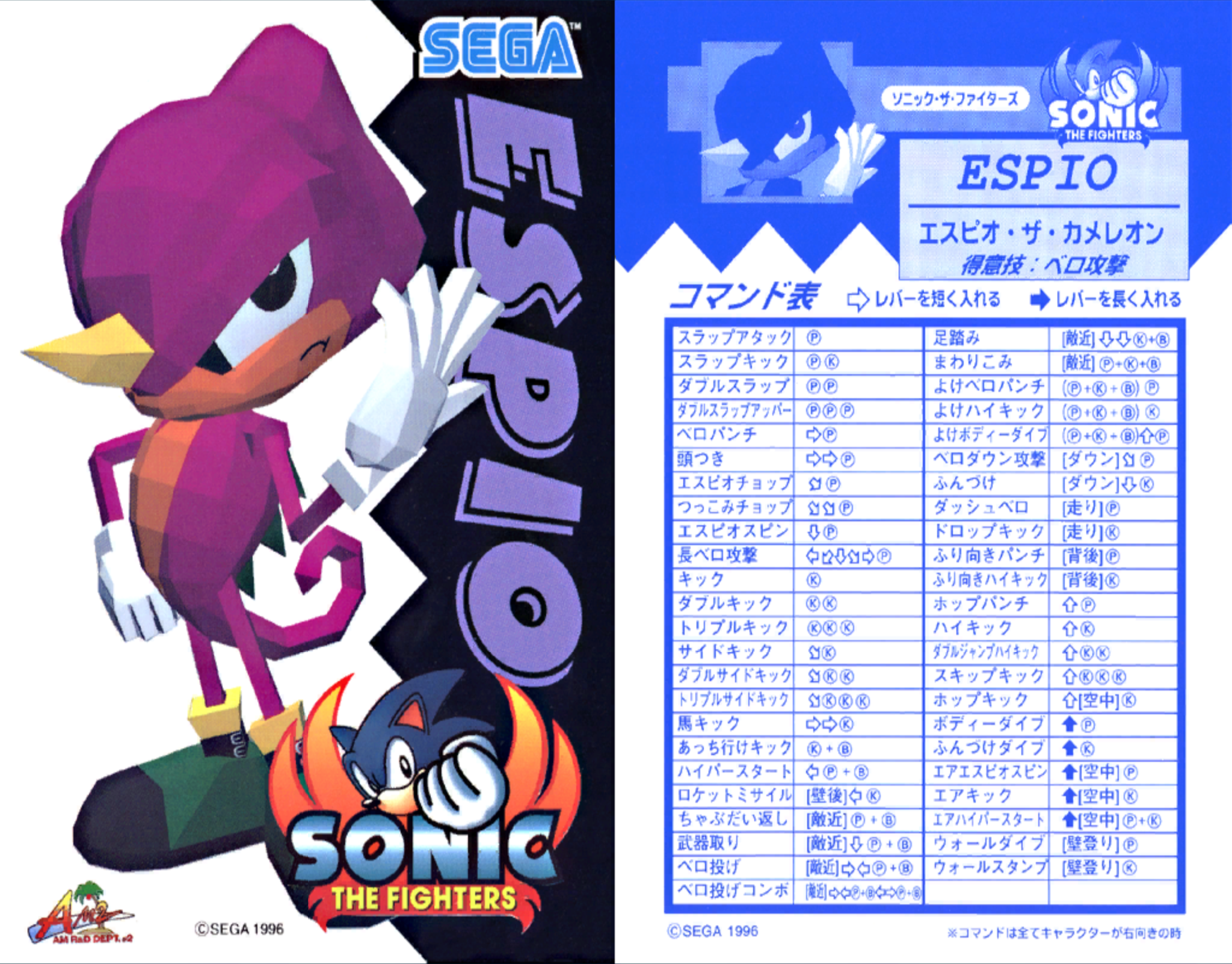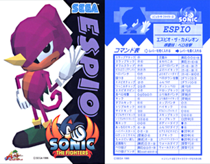 | ![]() From: Knuckles' Chaotix (1995) Full Name: Espio the Chameleon Speciality: Tongue Attack Home Stage: Mushroom Hill Knuckles in the Neutrogic High Zone incident, he fights alone this time around. |