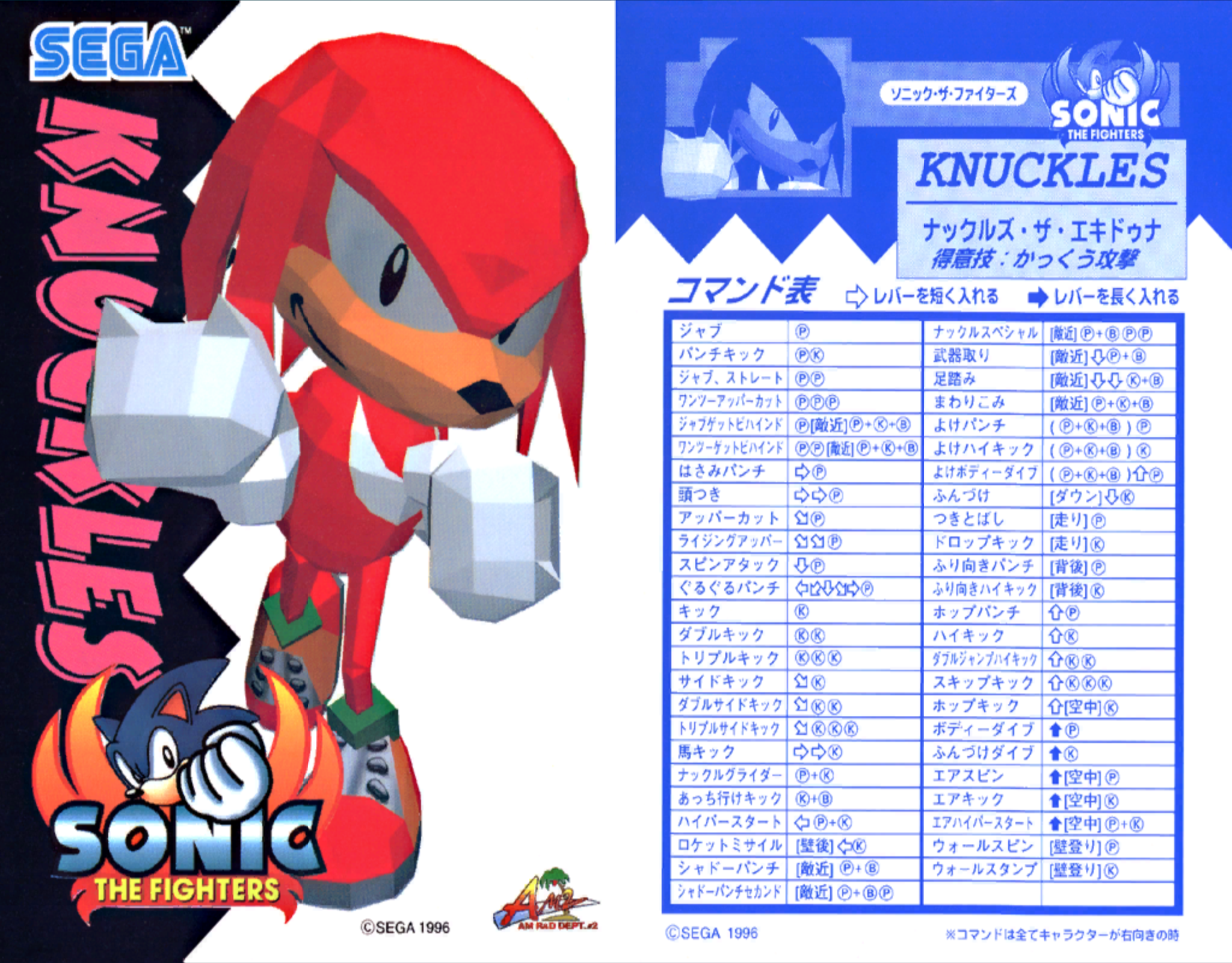 | ![]() From: Sonic the Hedgehog 3 (1994) Full Name: Knuckles the Echidna Speciality: Knuckle Glider Home Stage: South Island on the Floating Island, his name's not just for show, he's rougher than the rest of 'em. |
