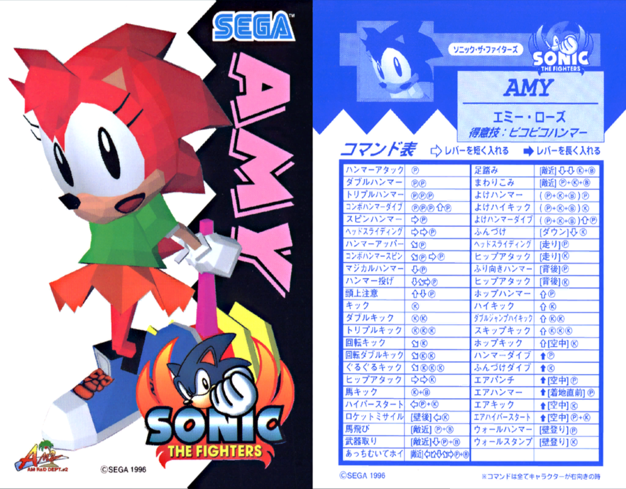 ![]() From: Sonic the Hedgehog CD (1993) Full Name: Amy "Rosy the Rascal" Rose Speciality: Magical Hammer Home Stage: Flying Carpet she's brought along her Piko Piko Hammer to squish and flatten the competition.