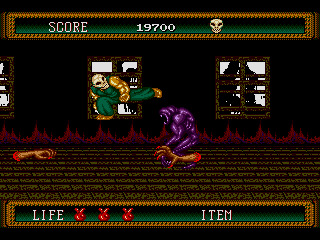This form is a right little sod. It's fast, small, hard to hit, and likes to jump around a lot. So, basically, it's an enemy that Rick couldn't possibly be more ill-equipped to fight. Even better, if you successfully get some distance between you and the Thing, it'll stand still until you get close, and if you attack it, it'll most likely jump over you then ram you from behind. This is one where I just threw my hands in the air and basically gave up. By 'gave up' I mean 'looked up strategies on YouTube'. This Game Master runthrough of the game shows that you can corner the beast, but while this video makes it look pretty easy to pull off, that's not really the case. Good luck with this one, punk!
