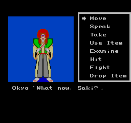 Now, while at first brush this looks like a proper Japanese console text adventure, this is a title that takes the very broad strokes of the genre and melds it with an action game, ending as something of a jack of all trades and master of none. Sega did release a few traditional games in this style- Sherlock Holmes: Loretta no Shouzou for the SG-1000 and Hoshi o Sagashite... for the Mark III are purely menu-based adventures more in line with the likes of Portopia and Famicom Detective Club. However, blending genres together was more Sega's interest, which you can see in the Master System title Kujaku-Oh / Spellcaster which melds platforming and adventure game elements, and the Sega-published, Santos-developed Mega Drive Battle Golfer Yui which mixes adventure with golf of all things, and while Sukeban Deka II isn't quite that outlandish, it does go for an action-adventure hybrid. The two segments are pretty separate from one another- selecting Fight in the adventure section when necessary leads to the action scenes, and the only thing you do in the adventure scenes that affects the action scenes is finding and putting on the iron mask for temporary invincibility- so tackling them separately seems like the easiest way to go.
