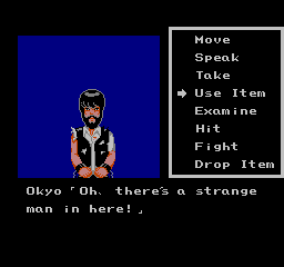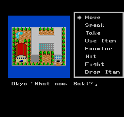 Generally these adventure sections aren't egregiously bad or anything, and are certainly breezy enough that you can get through at least the first half without too much issue. There's not much in the way of pixel-hunting, with pretty generous, uh, 'hit-boxes' on things you have to examine or attack, the inventory is very limited so you won't be juggling twenty different items and trying them out and there's no multiple conversation topics (although you'll have to speak to some people multiple times). The one curious menu item is Drop / Place which isn't used very often and feels a little vague, especially since you have to be a little more precise in where you 'place' objects you have to do this with, but most of the other options make sense. Additionally, each area is self-contained as once you've got an object of interest from there or accessed the next available area you're pretty much done, and generally you don't have to do stuff in one area to unlock stuff in another, but the list of locations you can move to never gets pruned. I can imagine this leading to first-time players getting stuck as they try to do stuff in places they've already been to, but once you realise you only have one task per area for the most part, it should hopefully be a little more straightforward. The inclusion of those accursed 3D mazes is unfortunate, especially with the time bombs and the bloody slide puzzle in the final one that you might have to repeat, but you absolutely have permission to use a map if you don't have any graph paper or additional patience handy. Those caveats aside, I'd describe this part of the game as completely agreeable and mostly pleasant.
