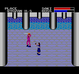After that though, the remaining bosses lack any kind of interesting approach and boil down to putting the iron mask on and attacking diagonally, so there's even less to them. They don't even have the support of the student mobs! One of these fights is interesting more in concept than execution, though- you fight the first Saki Asamiya! Hope you put the iron mask on so you don't get the two sukeban mixed up. It's a bit disappointing after the variety the earlier bosses show, but for fans of the show at least you do get a decent spread of some of the villains from the series. In general, this would probably need some beefing up to be a stand-alone game- playable Okyo and Yukino would've been a good start, as would different enemy mobs before boss fights- but as half of an action-adventure title, it does the job without being obtrusive beyond being your only source of a Game Over, only a temporary setback once you reach the second half of the game.