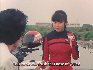 Unfortunately, your options are incredibly limited. While we can't link you to them, English fansubs exist of the first two seasons- if you're looking for them, we can tell you the first season was fansubbed by SkewedStudios, the Skaro Hunting Society fansubbed the second season, and no-one's done the third one... Yet. As soon as we know, you'd better believe we're on it. Beyond the TV series though, there's two live-action movies that follow on from the second and third seasons of the show (Sukeban Deka: The Movie and Sukeban Deka: Counter Attack from the Kazama Sisters) plus a two-episode OVA (that means it's anime) that were all given English releases on DVD in the US. Finally, there's the 2006 / 2007 film Sukeban Deka: Code Name = Asamiya Saki, localised as Yo-Yo Girl Cop, an accurate summary of the series if ever there was one. Like the three TV series, it doesn't require any prior knowledge of the series to jump in, as it's a new agent under the name Asamiya Saki (they do mention that the codename hasn't been used in a long time, a copy of the manga appears in a library scene and Yuki Saito makes an appearance) and this is the widest release anything in the series has been given, as even I have a copy on DVD! Weirdly, there's a softcore porn version of the film too, Sukepan Deka: Virgin Name = Moromi Saki, released in English- somehow- as Yo-Yo Sexy Girl Cop. So, you know, make sure you don't pick that up by mistake.