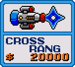 ![]() Laser Beam Initial Cost - $4000 Increases by $2000 each purchase Fires a thin beam that tears Enemy Generators into tiny little pieces in seconds. However, you don't get good screen coverage with it, which means it's useless on stages with many little enemies. Cheap, though! ![]() Cross Rang Initial Cost - $20000 Increases by $2000 each purchase Fires a star projectile that returns to you if it misses, disappears when it hits. Good for killing Enemy Generators quickly, but useless for defending yourself otherwise- only 1 shot can be on-screen at once! |