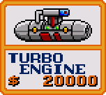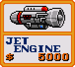 ![]() Big Wings Initial Cost - $200 No Price Increase Faster than the Small Wings, the Big Wings are cheap, cheerful, and probably good enough to get you through the whole game. You can grab most of the coins after killing a boss with them, but not all. ![]() Turbo Engine Initial Cost - $20000 No Price Increase Faster than the Jet Engine, the Turbo Engine is on the wrong side of 'fast' and makes doing anything with a hint of precision very difficult. Stick with the Big Wings/Jet Engine and save your money. |