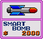 ![]() Smart Bomb Initial Cost - $2000 Increases by $1000 each purchase This kills any small enemies that on-screen, but does poor damage to Enemy Generators and bosses. Useful on Le-Picker for dealing with Teleporting Mcguffins, and might be an asset for a beginner. ![]() Heavy Bomb Initial Cost - $2000 Increases by $1000 each purchase Best Special Weapon in the game by miles, this falls from the top of the screen above your current position, severely damaging anything it hits. Useful on practically every boss, buy some if you're struggling! |