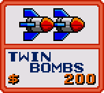 ![]() Twin Bombs Initial Cost - $200 Increases by $500 each purchase Allows for 2 Single Bombs on-screen at once. The Bombs are perfect for inflicting heavy damage on Enemy Generators and bosses, but aren't as easy to use. Necessary to perform the Killer Loop technique. |