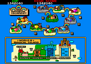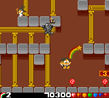 Most home ports of Rainbow Islands (except the PC-Engine CD and FM Towns versions) excised the Magical Island (and all the secret islands) but the Europe-exclusive Game Boy Color port, released in 2001, not only has all the secret islands (even including the NES-exclusive Kiki Kaikai island) it also has two additional cameos from Ptolemy- she appears alongside an unnamed clone in the static cut-scenes before you start Magical Island and after you beat it. However, to actually see the secret islands in the GBC port (aside from going straight to them in the pointless Time Attack mode) takes an inordinate amount of patience, because as you'd probably guess, the humble GBC is absolutely not up to the task of replicating the arcade game. To be fair, it's not nearly as bad as the rest of the internet says- unlike Classic Bubble Bobble and most of the other Taito GBC games, while the gameplay physics are totally different, the changes don't completely break the game. It's complicated, man.