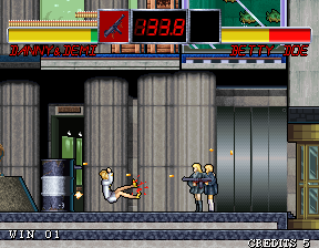 A successful international business-woman who desperately needs capital to fund her several businesses. | Her diverse background includes being a former high paid hitwoman. Arena: Seaside Aquarium Betty Doe is close enough to the placeholder name Jane Doe to count as being the lady equivalet of John Smith here. She's just a normal assassin, the 2P-Bob to John Smith's 1P-Bub but she's a bit more professional than ol' John Boy, meaning she has a much better aim when on stable ground, so shoot to kill! FUN BONUS FACT: To make up for being generic enough to have a placeholder-ish name, she has one of the coolest stages in the game. | |