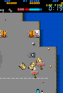 It probably goes without saying, but let's say it anyway- as an older Capcom title, The Speed Rumbler is hard. Fortunately, it's not quite on the same level as the arcade Bionic Commando, but it's still pretty tough. But, Joe's going nowhere if we bellyache about the difficulty of the road ahead, eh? As a little bonus, we'll be keeping track of what I suppose you'd call 'par times' for each stage, roughly the fastest lap we've managed to achieve, as a fairly terrible player of old Capcom games. This is technically a driving game after all, so wouldn't it stand to reason that there's a best lap time? Hopefully the tips we share will help you break those lap times (although let's face it, you're going to murder them and make me cry, aren't you? If you do, I'll be proud but also upset).
