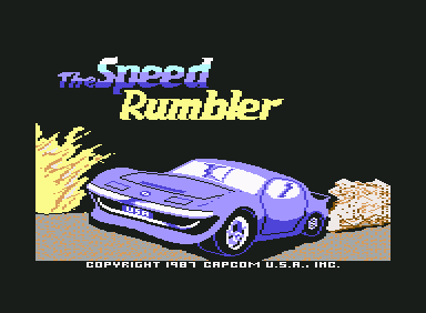 Home ports now, and oh dear, this is the part where we know there's a home computer version but we have to skirt around it because we're so comically bad at getting home computer games to run in emulation. Except this one. The Speed Rumbler's sole home port before the Capcom Classics Collection rerelease was for the Commodore 64, developed by Lyndon & Associates, and it's... Not really a port at all. I mean technically it's The Speed Rumbler, in that it is a top-down driving-shooting game, but all the level designs and enemy placements are totally different. I mean, it works but it's not really a proper port. One for the super-curious only, really, unless you're just gonna watch a longplay (which also has a bonus cracktro!). I really don't have much to say about this one...