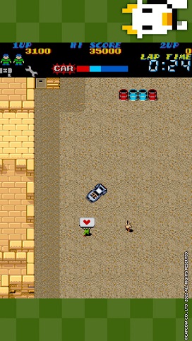 Developed internally at Capcom but using MAME emulation as a base, this isn't quite as good as M2 and Gotch Technology's efforts but the focus is a little different, as the Stadium reissues are about volume, preserving the most amount of games as possible that they can reasonably license (hence some games getting title changes- you think Capcom's able to release a game called Avengers, in this economy?). It does, however, take a similar 'buy the games you want' deal with £1.69 for each individual game, although the full pack, usually at £32.99, is often on sale so you might want to wait it out. The Speed Rumbler is in the second set and loses the Casual Mode and gallery from Cabinet but keeps most of the dip-switches, online leaderboards and region selection and also gains a few new features- save states, rewinding, five different speed levels in case you want the game to be faster or slower and being able to flip the screen orientation (perfect for using with a Flip Grip on Switch) as you can see above. One tiny part of the game has been edited though- the First-Aid Kit now uses a heart instead of the red cross as the International Red Cross really doesn't like their symbol being used for entertainment. Generally this is a perfectly fine version of the game, although I think the Cabinet version is better.