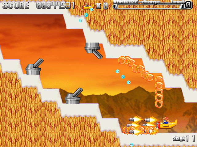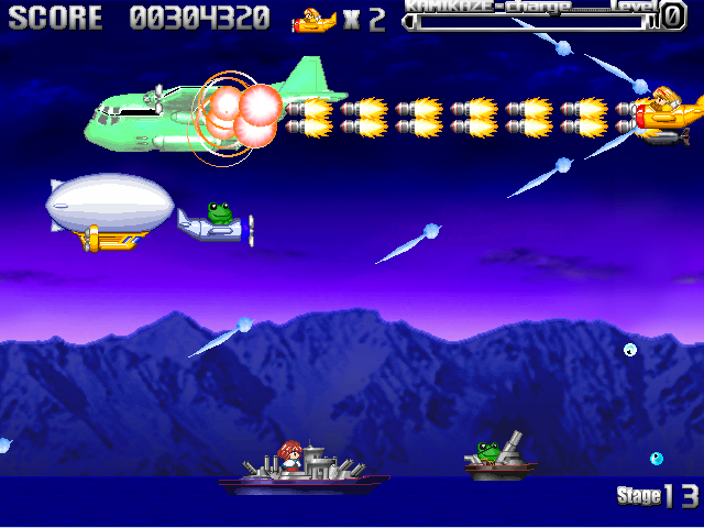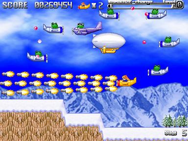 [Maybe my idiot writer has a point for once (albeit one he had to assert through violence). Maybe I'm holding on too tightly to the ways of the past. Maybe... I should watch what I'm typing, mother of God what was that drivel in the last sentence? Point is, if you're going to ask me which of these two games- the tightly-constructed, minimal yet challenging Sky Kid, or the over-bloated, confusing mess of ideas that is Tokukou Shojo- is better designed, then obviously I'm going to say Sky Kid. There's no contest here, it's just more tightly constructed. I can almost see where they were going with Tokukou Shojo, though- like my lackwit writer says if you're not looking for the Sky Kid experience, this has plenty of explosions and is perfectly ridiculous, and there's a rather interesting (if awkward) scoring system with the kamikaze attack, where you can get more points by killing enemies with it as it causes point items to spawn... But that's for the shmup maniacs. That's not my scene. Ah, I dunno, the game's just not for me, is it?]
