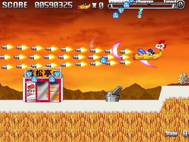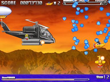 Thing is, my dear boy, I've been playing it myself and it didn't offend me to this degree. It's different from Sky Kid, yes- there's less subtlety to it, and the weapons are completely ludicrous- but I like being able to kill everything on screen. You know how I feel about video games being as silly as possible, after all. Besides, I don't think doujin releases like this are well-suited to scathing reviews like this. I'm not sure Daisessen's intent was to make a better Sky Kid, exactly. Seems to me they just wanted fun making a game with the girls from Kanon, picked Sky Kid for whatever reason and just amped everything up, especially the weaponry. Hell, that's how I'd design a game (for example, take Kung Fu Master, add helicopters and make it star, I dunno, Haku Yowane or something). It's a different take on the game, and a perfectly valid one. Do you see where I'm coming from?