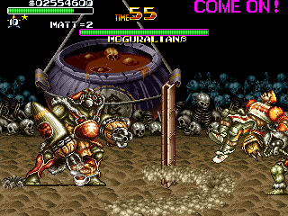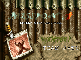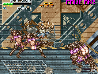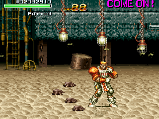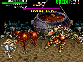 At the end, there's the old scrolling brawler cliche, a door you've got to destroy with your own power.